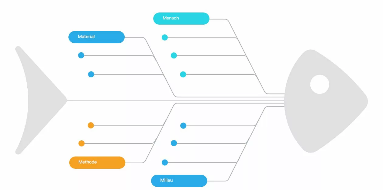 Der Kopf symbolisiert das Problem. Mit den Fischgräten des Diagramms visualisieren wir die Ursachen, die wir außerdem nach klar definierten Themen strukturieren und kategorisieren.