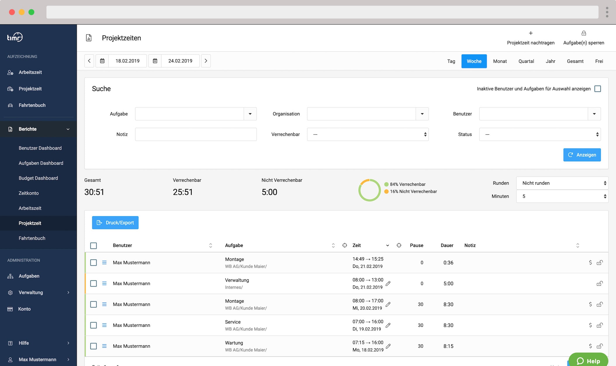 Die Änderungen am timr UI, die mit diesem Update durchgeführt werden, sind der bisher wichtigste Schritt im gesamten Erneuerungsprozess. Die größte Umstellung ist damit erfolgt. In 2 weiteren Schritten folgen dann noch die Umstellung der Bereiche „Verwaltung“ und „Aufgaben“.