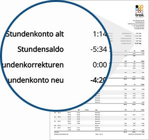 Eine Übersicht über Ihr Zeitkonto haben Sie in den timr Apps am iPhone und am Android ebenfalls zur Verfügung. Dazu können Sie in der timr App jederzeit Ihren Stundennachweis abrufen. Somit haben Sie Ihr Stundensaldo sowie das Urlaubskonto immer und überall im Blick.