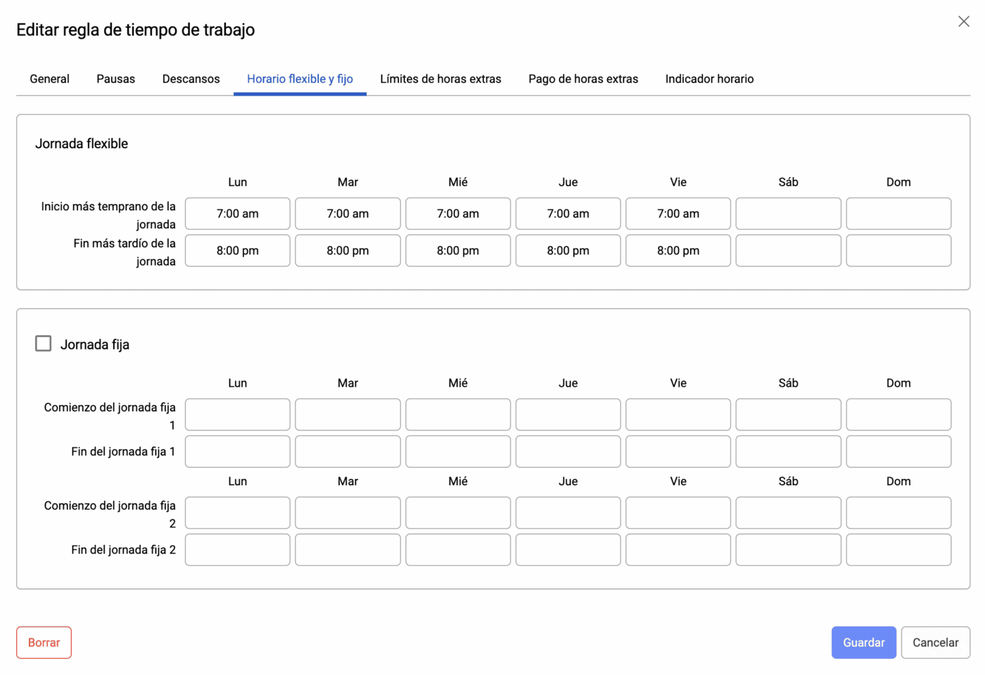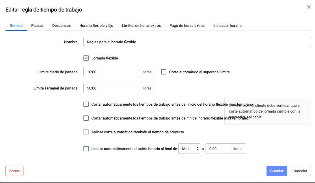 Puede gestionar todos los modelos de jornada laboral según las horas previstas para sus empleados, ya trabajen a tiempo completo, a tiempo parcial o con horarios flexibles.