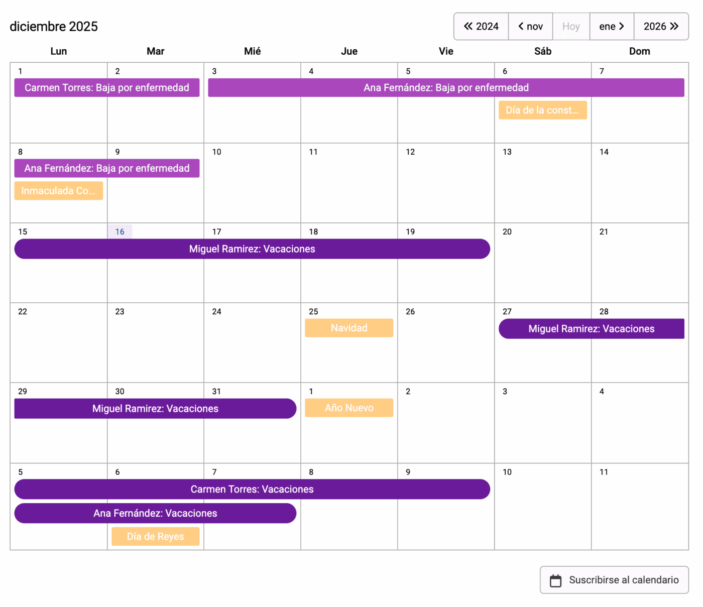Planificación de vacaciones clara y transparente