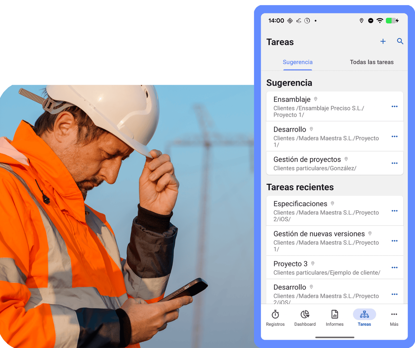 timr memoriza qué tareas han registrado sus empleados previamente en una ubicación concreta y las sugiere automáticamente en futuras intervenciones en ese mismo lugar.