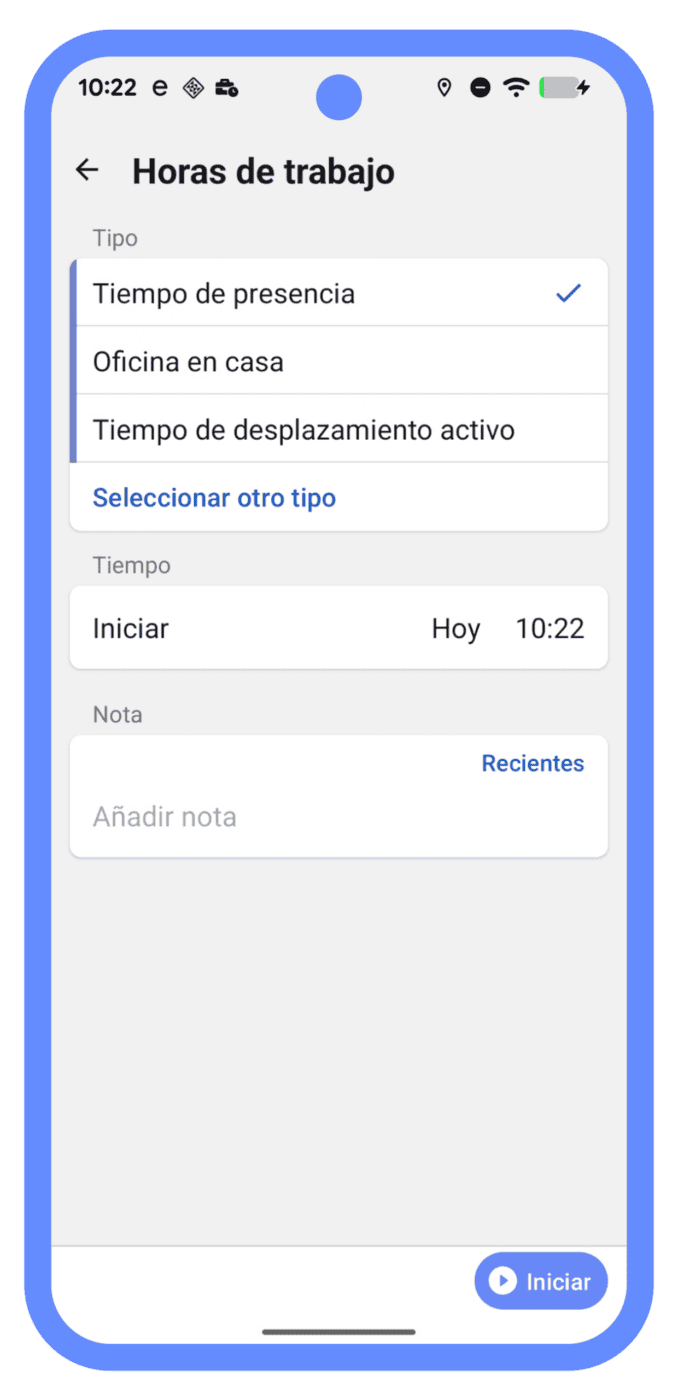 No. El registro de tiempo no se activa automáticamente al llegar al lugar de trabajo. Sin embargo, puede utilizar la función de geovalla (geofence) para restringir el inicio del registro a un radio determinado, garantizando así mayor control y precisión.