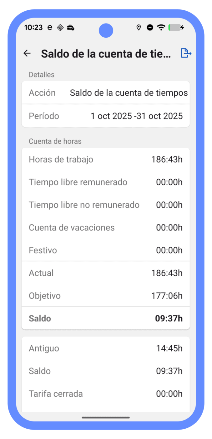 Con la app de timr, cada empleado lleva su informe de horas actualizado directamente en el móvil. Así, dispone en todo momento de una visión clara de las horas trabajadas y del saldo de vacaciones disponible.