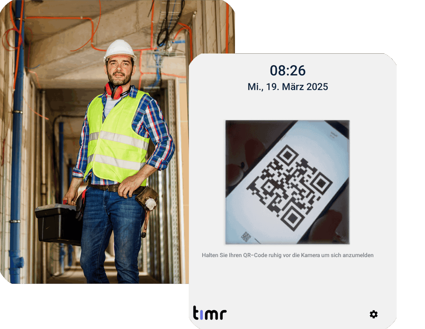 Ambos se generan previamente desde la aplicación web de timr para cada trabajador, garantizando una identificación rápida y segura.