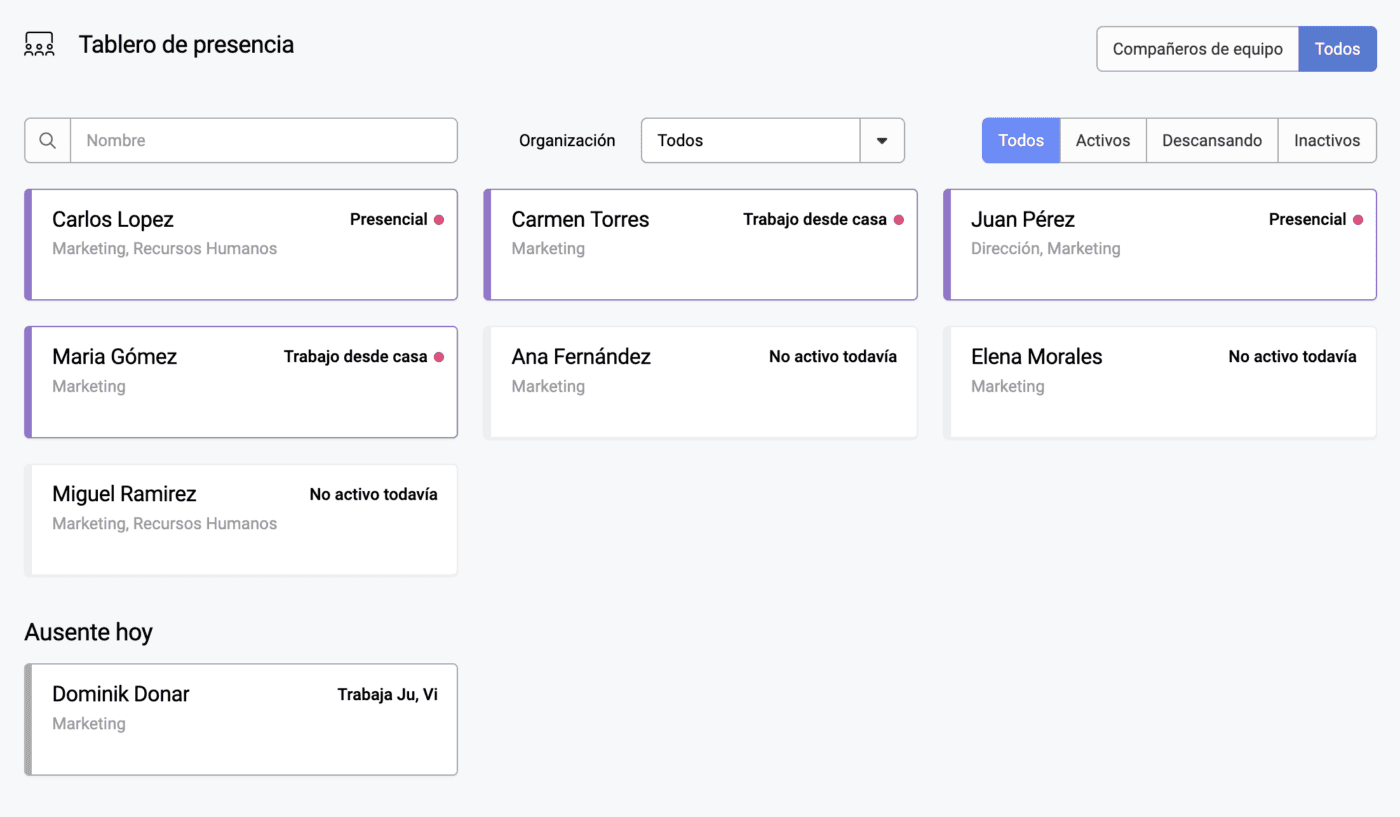 Disponga de una visión clara y actualizada de su equipo con un solo vistazo, lo que facilita la coordinación y la gestión diaria.