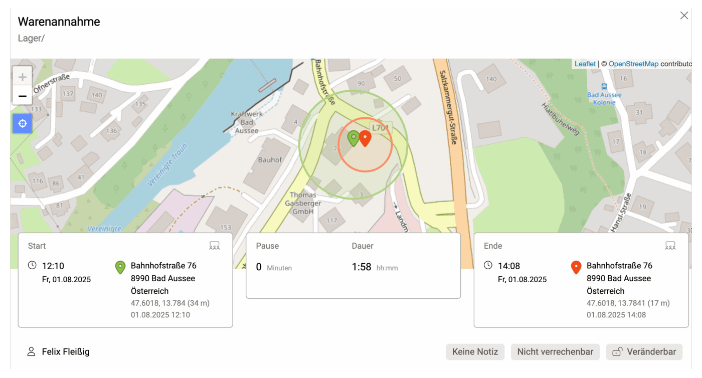 En casos de uso temporal —como obras de corta duración— se puede activar el registro de ubicación al iniciar y detener el tiempo. Así dispone de un comprobante claro y verificable para sus clientes.