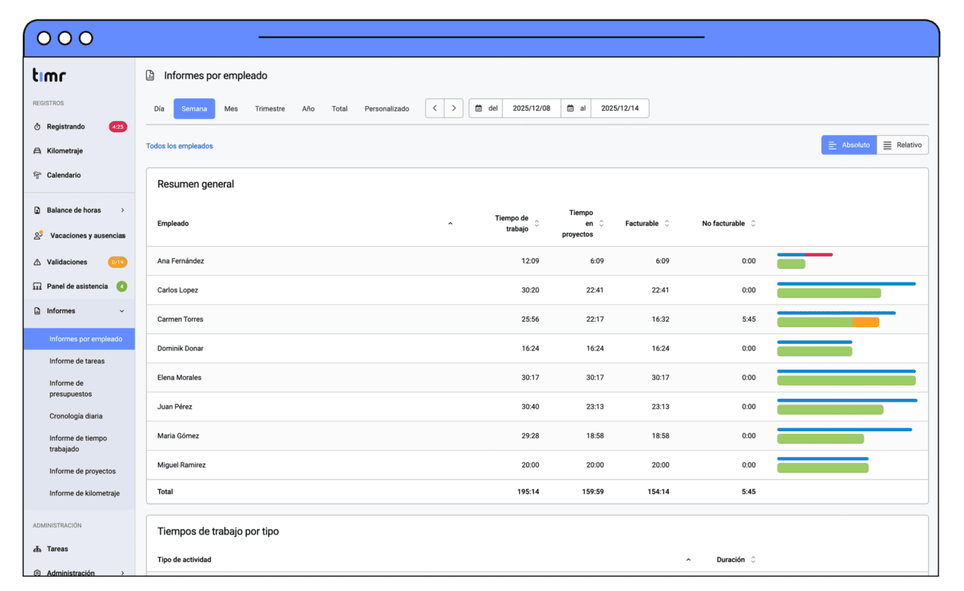 Esto permite conocer en todo momento en qué está trabajando cada persona y facturar los tiempos con precisión.