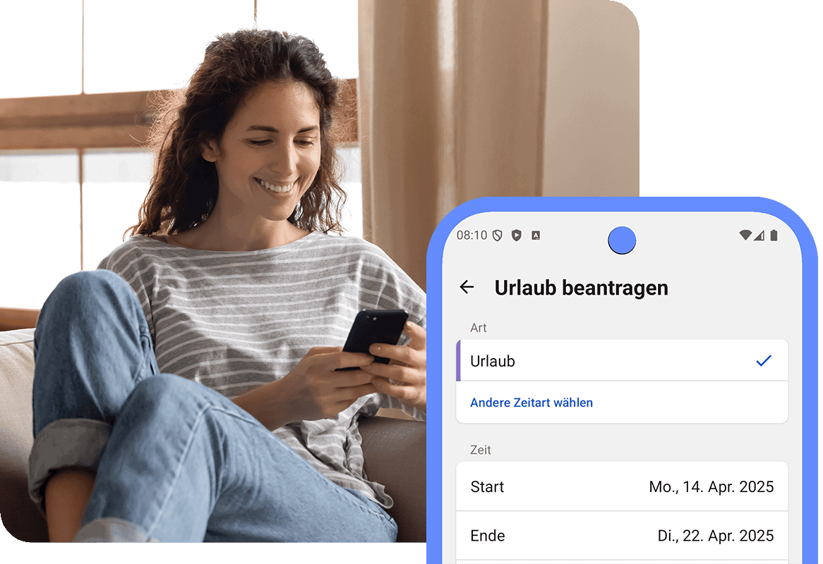 Gleichzeitig wird Ihre HR-Abteilung entlastet. Denn Mitarbeiter können eigenständig auf ihre Stunden- und Urlaubssalden in der App zugreifen. Für Sie bedeutet das weniger Aufwand und stets aktuelle, korrekt dokumentierte Arbeitszeiten.