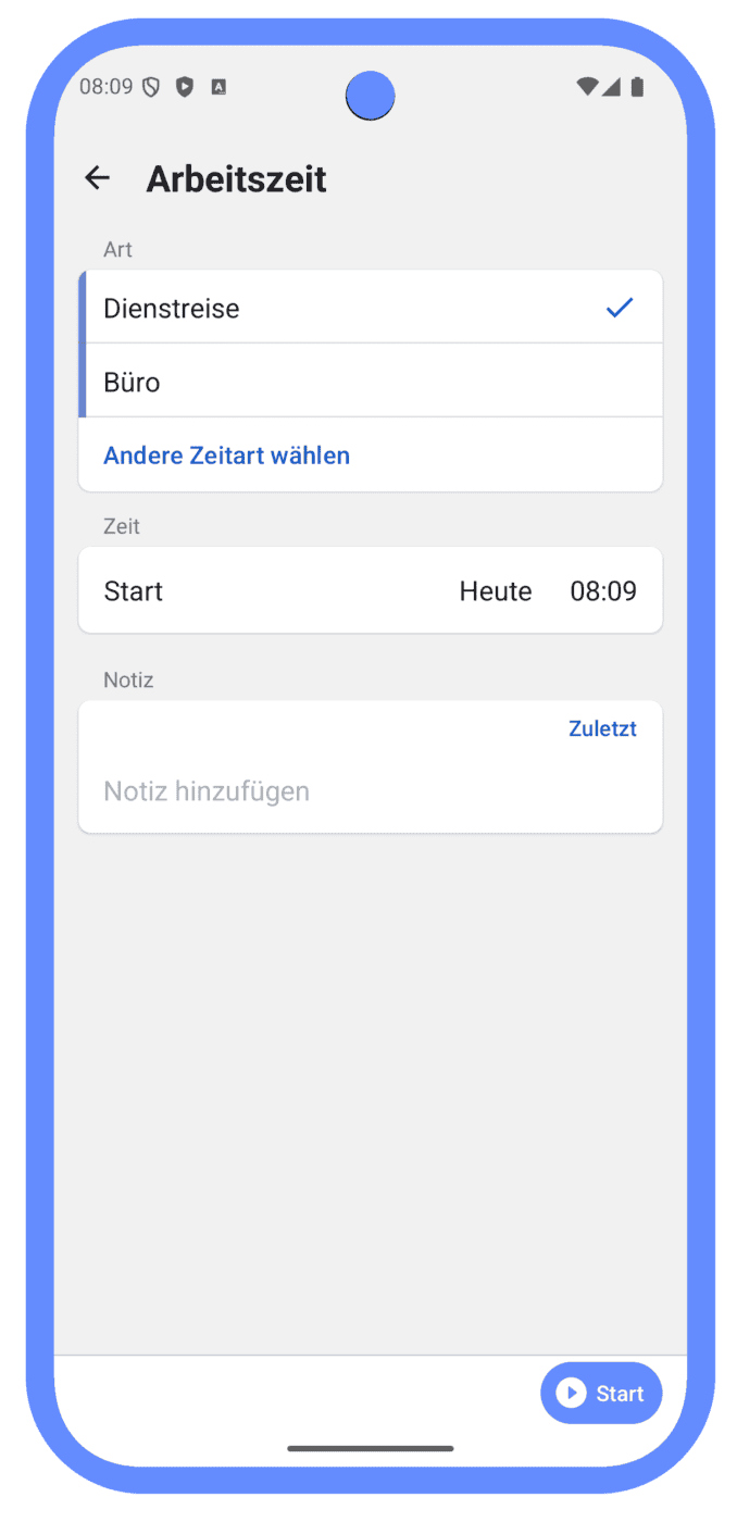 Eine Zeiterfassungs-App für Android ermöglicht es Ihren Mitarbeitern, Arbeits- und Projektzeiten jederzeit am Smartphone zu erfassen. So erhalten Sie sofort verlässliche Daten für Abrechnung, Planung und Nachweise.